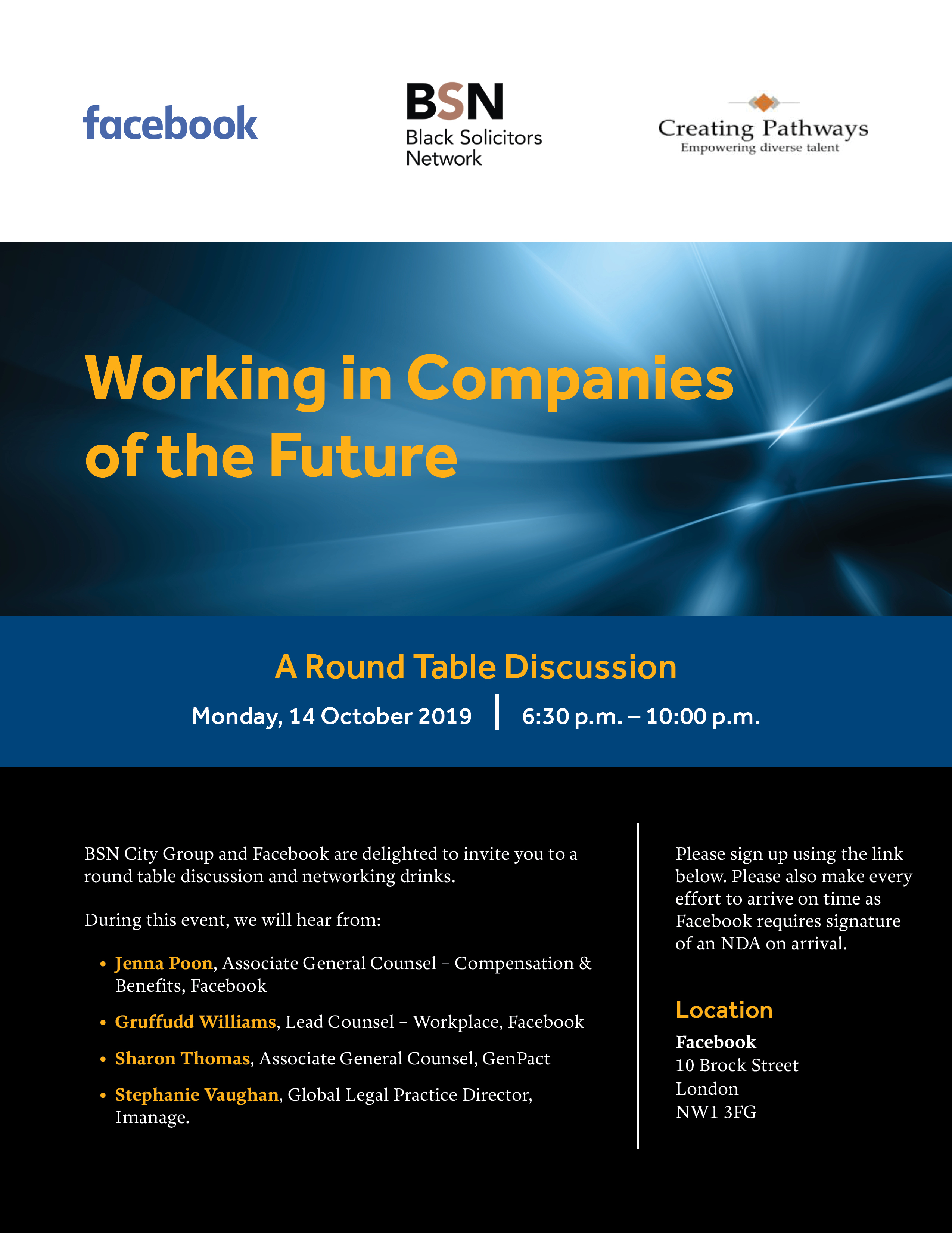 BSN City Group/Facebook Working In-House in Companies of the Future – Monday 14 October 2019